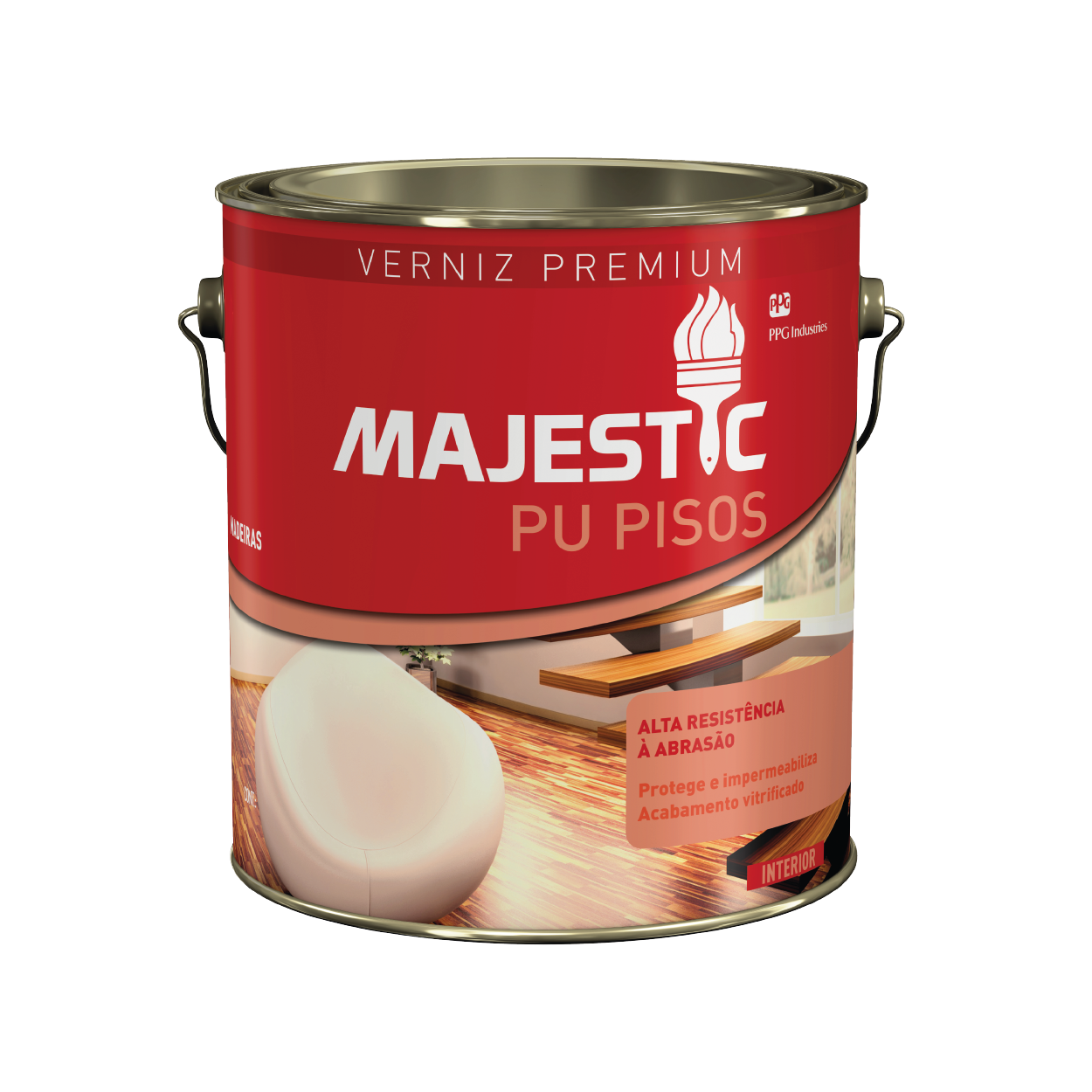 Majestic PU Pisos es un barniz poliuretánico monocomponente para pisos y escaleras de madera. Su fórmula de alta calidad sella, protege y proporciona excelente apariencia vitrificada, realza la belleza natural de la madera, y proporciona un acabado extraordinario, dejando su ambiente mucho más bello y sofisticado. Indicado exclusivamente para interiores, Majestic PU Pisos puede ser aplicado sobre madera nueva o antigua y es resistente a la abrasión y a los habituales productos de limpieza. Puede ser usado en encimeras, pasamanos, muebles, etc.
